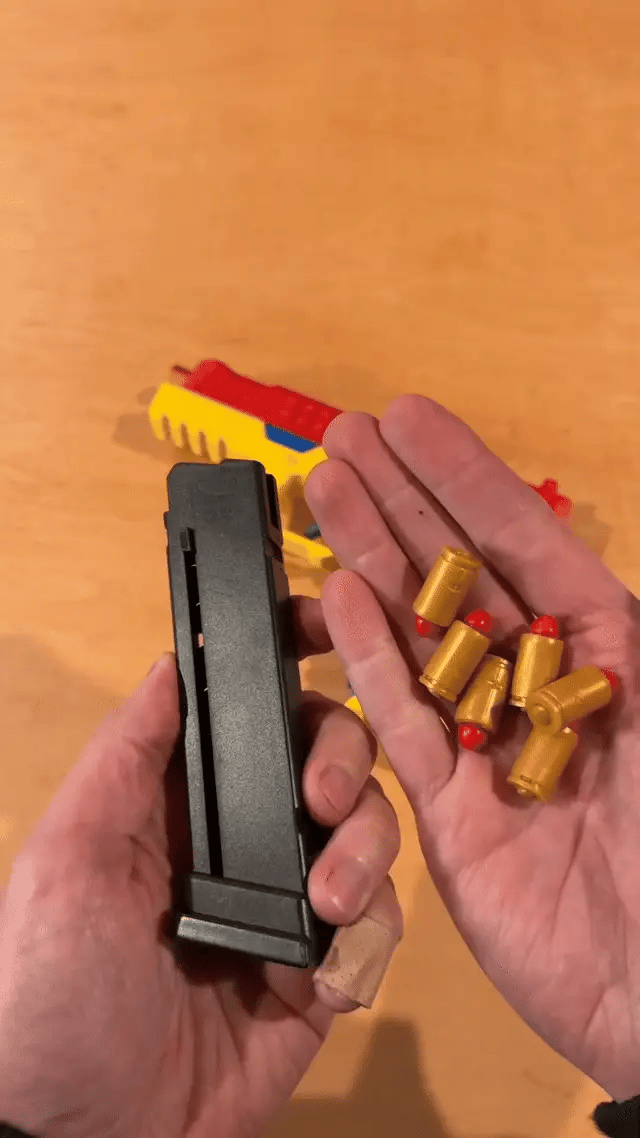 The Mini Blaster is built for safe play, with smooth rounded ABS plastic and soft rubber shot bands that keep it gentle and kid-friendly